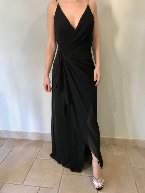 SS '20 Atos Lombardini: Lange Mouwloze Zwarte Jurk Ruche