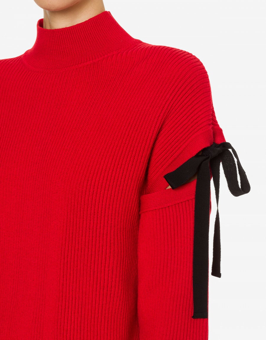 FW '20 Boutique Moschino: pull met opstaande kraag en strikken