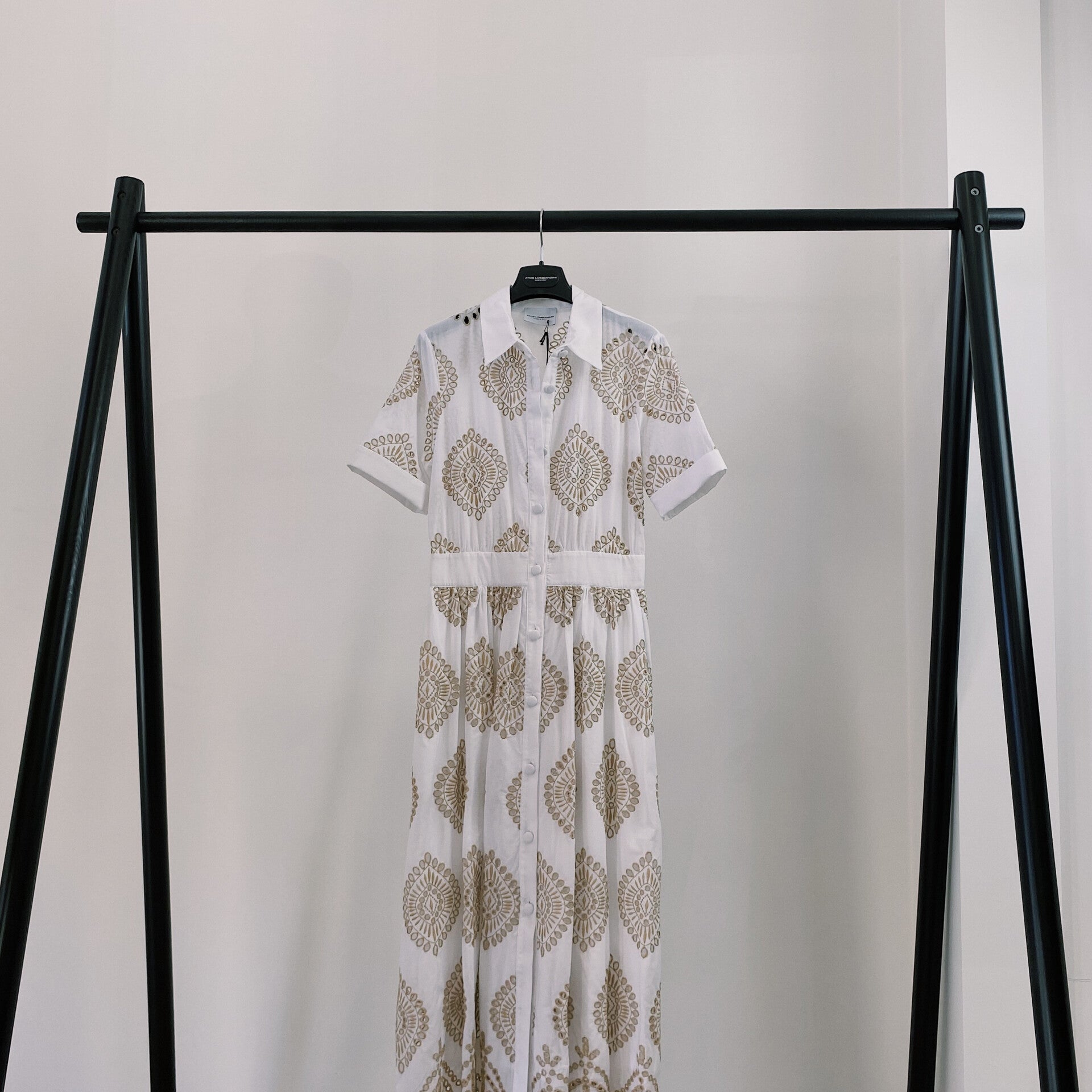 ATOS LOMBARDINI SS '21: Lange doorknoopjurk in katoen met broderie