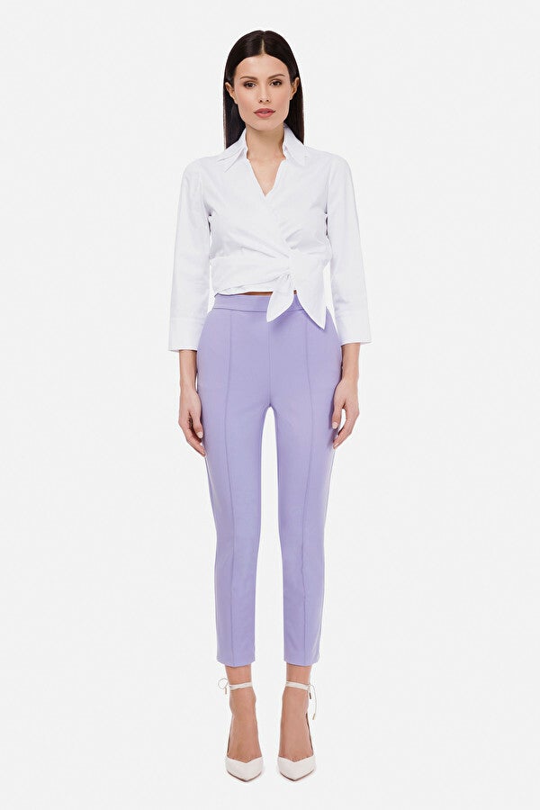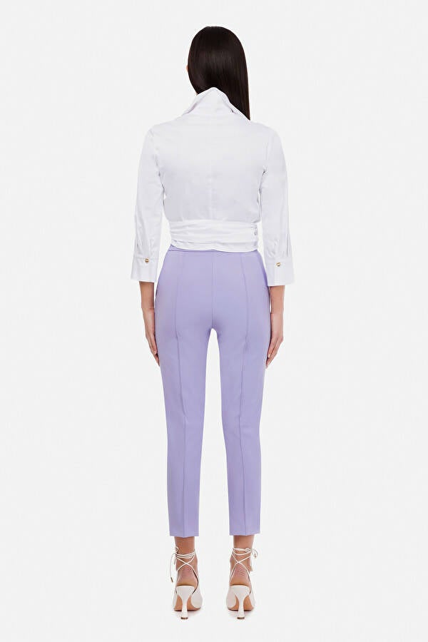 Cropped blouse in katoen satijn met driekwart mouw, omgeslagen manchet met manchetknopen-effect, dubbel inzetstuk met gouden metalen knop, tailleband met verstelbare strik.