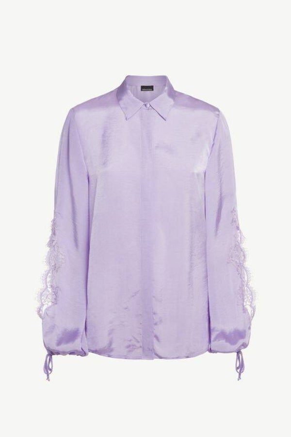 Blouse met ballonmouwen, kraag en kanten applicaties.