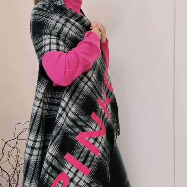 PINKO FW '21: geruite cape met contrasterende opdruk