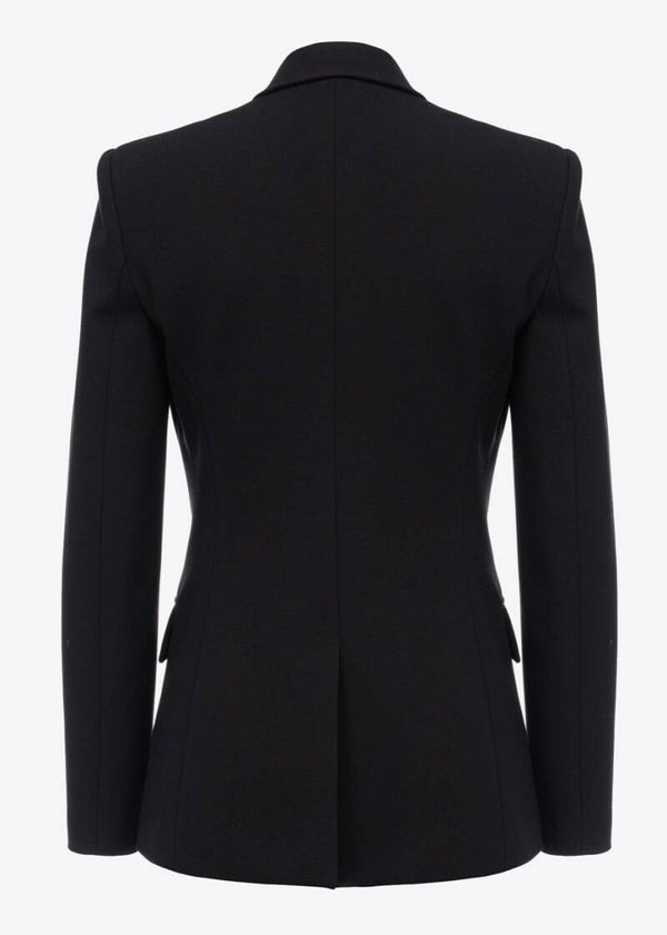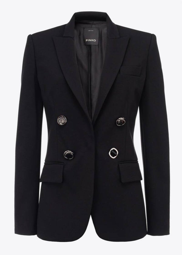 Blazer van technische, doorgestikte viscose. Lapels, zakken met klep aan de zijkanten en split in het midden onderaan op de rug. Gevoerd. Sluiting met dubbele knopenlijst met verschillende knopen, elk verschillend van de andere.