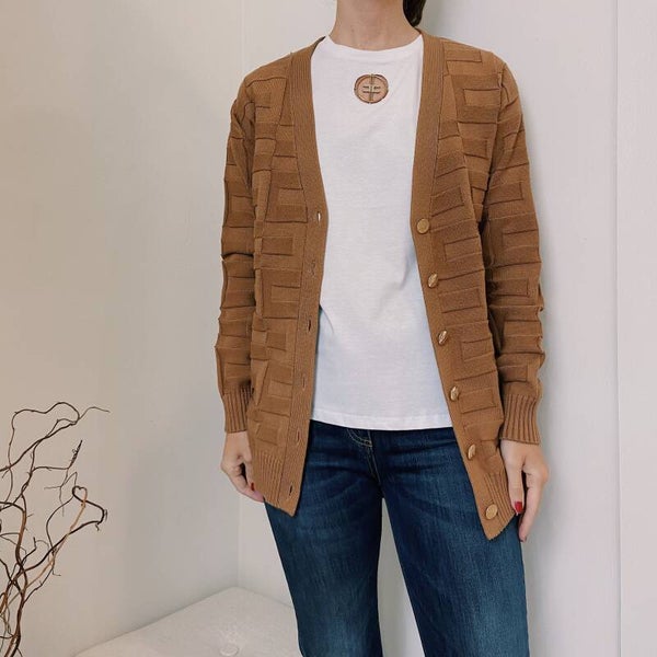 Elisabetta Franchi FW ‘21: cardigan met ingedrukt logo
