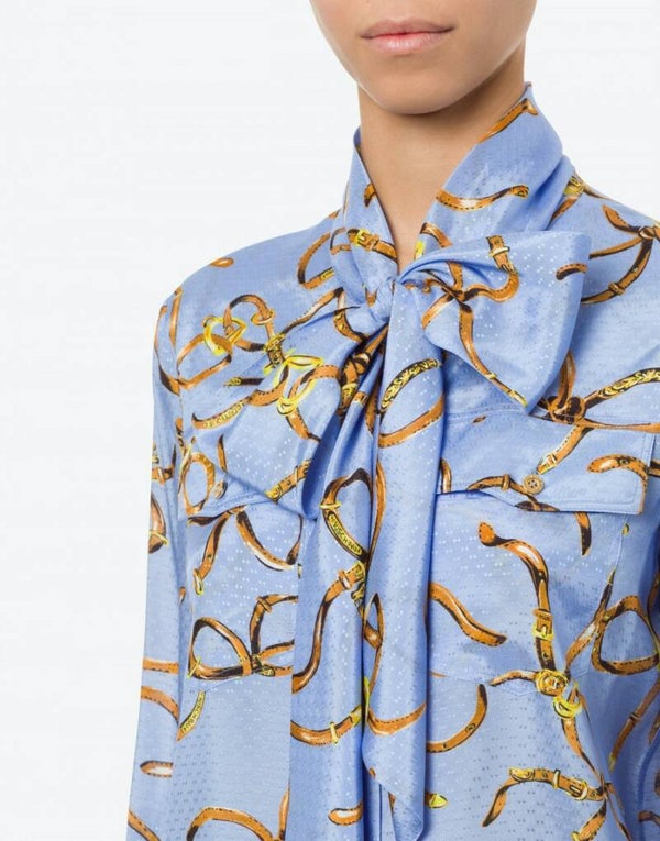 Blouse uit het "Equestrian Chic" thema met strik-vormige hoofdstel print.