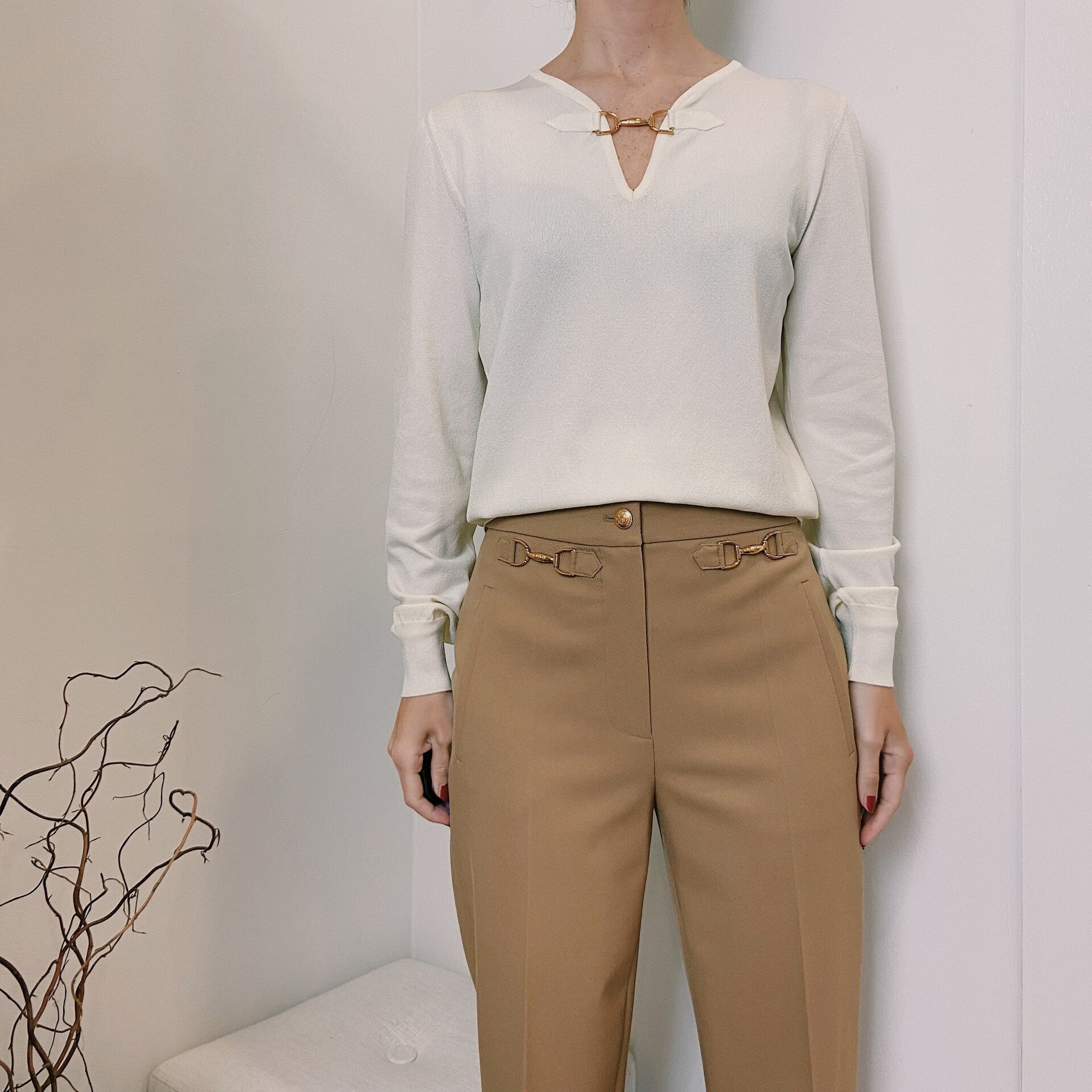 Licht pulletje uit het "Equestrian Chic" thema met uitgesneden v-hals en bitsluiting.